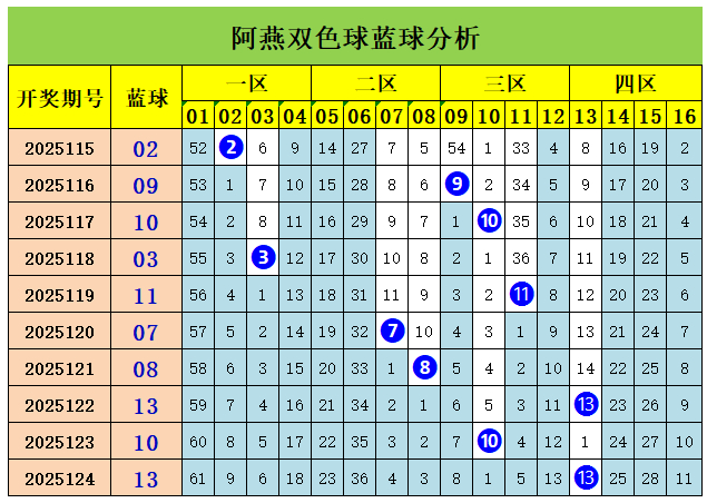 二区:上期开出3个奖号18、19、21,在前10期开奖中,该区共开出12个奖号,二区落号较冷,本期预测该区落2个奖号,参考号码13、21