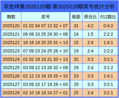 上期奖号极距为25,开出1枚重号19,质合比为2:4,邻孤传为4:1:1,蓝球开出质数号码:01。
