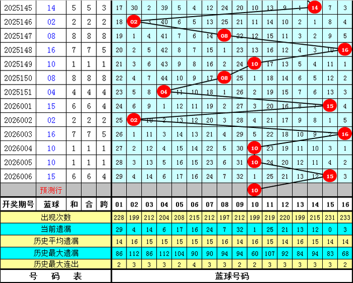 蓝球:历史同时0路号开出:03、06、09、12、15;1路号开出;01、04、07、10、16;2路号开出;05、08、11、14,蓝球012路个数比为9:7:7,现时1路号历史同时轮空3年,本年同时介意1路号出现,参考号码10。