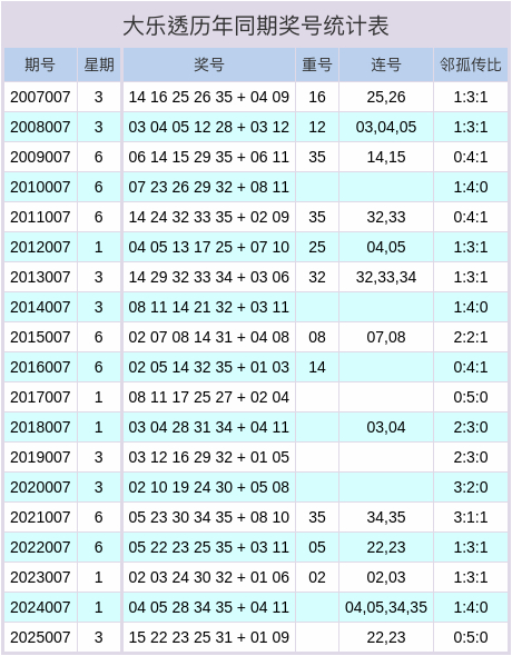 大乐透历史同时奖号数据表